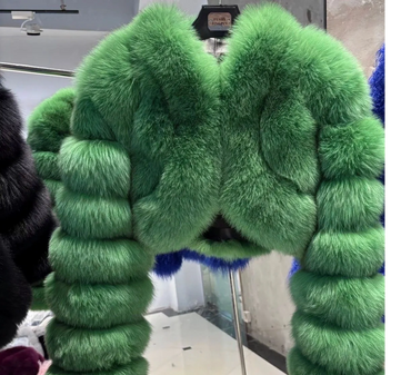 Make a bold yet refined statement in this striking green fur coat. Featuring a luxuriously soft, plush texture and a deep emerald hue, this piece brings effortless glamour and standout style to any wardrobe. The polished silhouette offers warmth and comfort without compromising elegance, making it perfect for both elevated daytime looks and dramatic evening wear. Sophisticated, eye-catching, and timeless, this coat is designed for those who aren’t afraid to stand out.